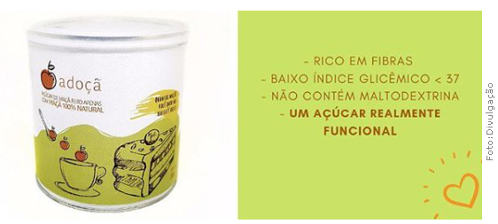 Comercializado com a marca Adoçã , é elaborado a partir de maçãs desidratadas e mais nada. O gosto, de acordo com a fabricante, é o mesmo do açúcar branço, e deve ser usado na mesma quantidade. Além da grande redução calórica, o produto 100% natural é rico em fibras e seguro para consumo dos diabéticos.