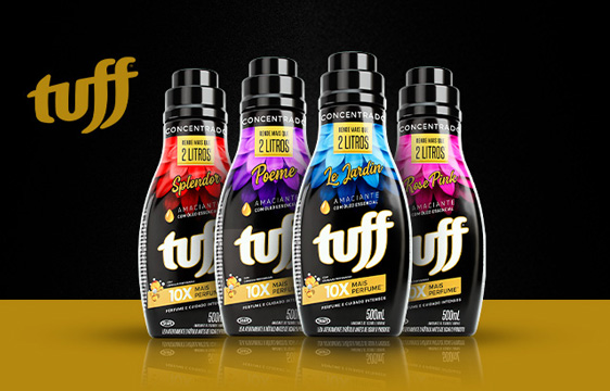 Perfumação é um dos fatores mais valorizados pelos consumidores brasileiros no cuidado com as roupas. E a linha de amaciantes concentrados Tuff atende perfeitamente a esse desejo do público.