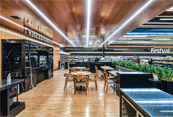 Experiência e gastronomia: Na rede Festval (PR), o cliente encontra solução completa, que inclui refeições prontas e consumo de vinhos na hora; ambientação também é um cuidado adicional (Foto: Divulgação)