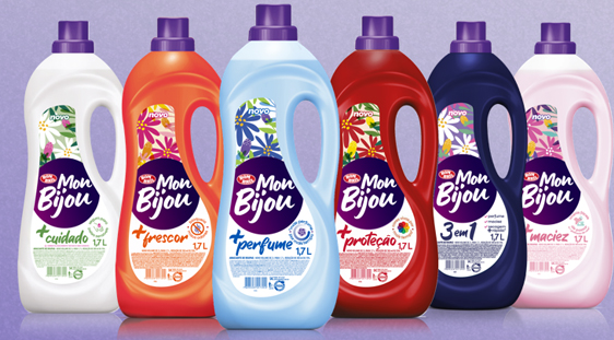 É o caso da linha de amaciantes Mon Bijou, que foi totalmente reformulada e agora traz em cada versão um benefício funcional destacado na embalagem, para rápida visualização do shopper no ponto de venda. Um exemplo é o Mon Bijou + Perfume, cuja fórmula foi desenvolvida para deixar as roupas perfumadas por muito mais tempo, até mesmo depois de secas, pois traz 30% mais perfume do que a versão Pureza atual. Outros produtos da linha contam com benefícios como maciez, frescor, proteção, cuidado e ação 3 em 1.