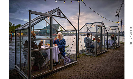 Desde o final de maio, está atendendo os clientes em cabines que mais se parecem com estufas e comportam de duas a três pessoas, garantindo distanciamento entre os consumidores. As reservas se esgotaram para o mês de junho inteiro logo após a divulgação do uso desses “equipamentos”.