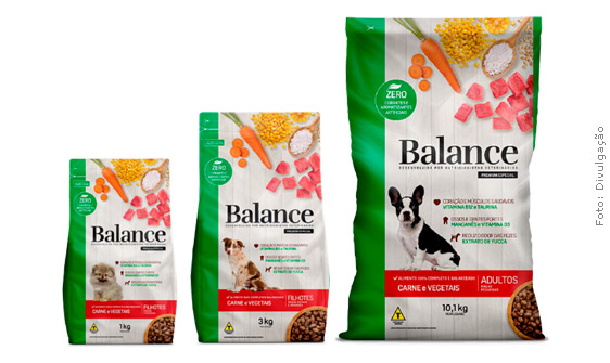 Marca de ração premium para cachorros da BRF, Balance apresenta o novo sabor Carne com Vegetais. De acordo com a fabricante, o produto é natural, desenvolvido por nutricionistas veterinários e produzido com ingredientes saudáveis, sem corantes nem aromatizantes artificiais.