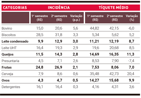 Carne bovina, biscoitos e leite condensado foram as categorias de produtos que tiveram maior incidência nos carrinhos do consumidor da região Sul na passagem do primeiro para o segundo semestre de 2022, de acordo com levantamento elaborado pela Horus . Segundo Luiza Zacharias, diretora de novos negócios da Horus, um dos fatores que explicam esse aumento é a conjuntura econômica. Embora o ano tenha começado com inflação em alta, no segundo semestre.