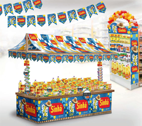 As Festas Juninas são uma grande oportunidade de estimular as compras por impulso e isso pode ser feito desde já, com o apoio da Sinhá Alimentos. Barracas da marca – inclusive automontáveis – estão disponíveis para serem alocadas em áreas de alto fluxo de cada formato de loja, assim como bandeirinhas, plástico de forração, woobler, stopper, precificadores e faixas de gôndola. Outra dica é escolher uma ponta de gôndola para expor os produtos, reforçar a marca Sinhá e deixar o PDV ainda mais atrativo