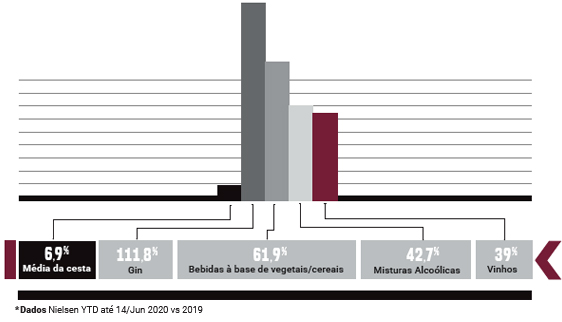 Com crescimento menor que de outros departamentos, as vendas de bebidas não avançaram mais por conta da redução do convívio social, que estimula o consumo, conforme Souza. Mesmo assim, categorias como gin e vinho registraram avanços bem expressivos. Há quem se permita uma bebida de melhor qualidade mesmo que em frequência menor.