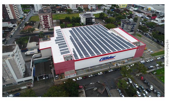 Quem chega para realizar suas compras no Condor América, na cidade catarinense de Joinville, encontra um sortimento com mais de 20 mil produtos à sua disposição, incluindo itens sofisticados reunidos em um espaço gourmet. Tem também a praticidade de contar com uma galeria de serviços com dez lojas, incluindo pet shop, lanchonete e farmácia. Mas o grande destaque está na cobertura da loja: a maior usina solar em supermercados no Brasil.
