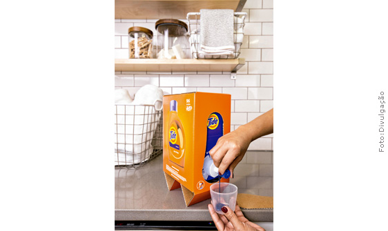 Com o crescimento do e-commerce, Unilever e P&G estão criando embalagens especiais para esse canal nos Estados Unidos, tanto para entrega ao varejo como direto ao consumidor. A marca Tide, da P&G, ganhou uma caixa de papelão (Tide Eco-Box) destinada a seu lava-roupa líquido. A embalagem é 1,8 kg mais leve do que a tradicional garrafa plástica de 4,2 kg, e o produto tem fórmula ultraconcentrada, que permite a lavagem da mesma quantidade de roupas. Já a marca Sétima Geração, da Unilever, lançou embalagem para seu sabão líquido, que é 2,2 kg mais leve e 9 polegadas menor do que o garrafão de 4,2 kg.