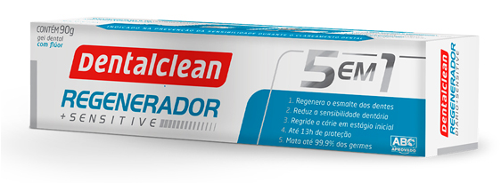 Durante a escovação, a fórmula bioativa do Dentalclean Gel Regenerador + Sensitive 5 em 1 se liga ao dente formando um escudo protetor muito similar ao esmalte original. O alivío da dor causada pela sensibilidade dentária começa a ser percebido já na primeira utilização. Quem utiliza o produto também percebe uma textura mais cremosa, resultado da evolução pela qual passou a formulação.