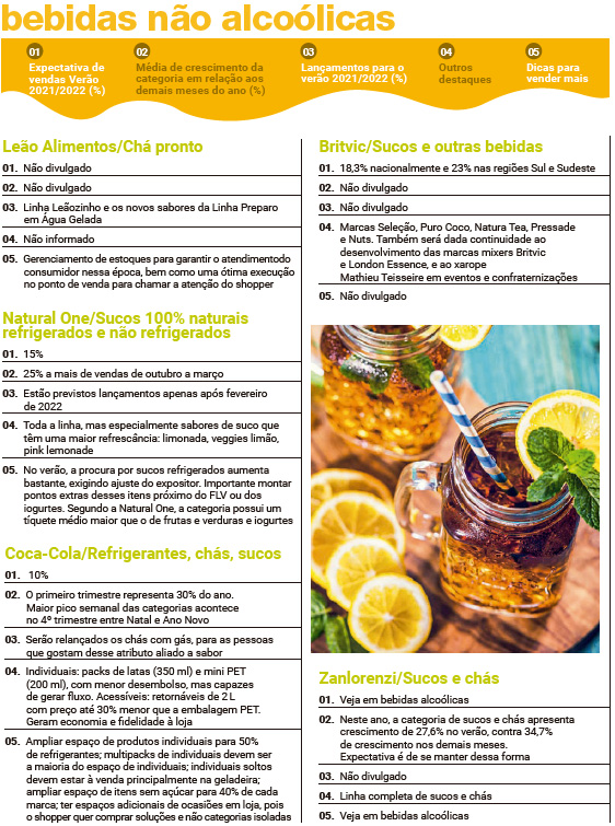 Na estação mais quente do ano, a seção de bebidas ganha ainda mais importância. Fique de olho no mix e garante reposições frequentes.
