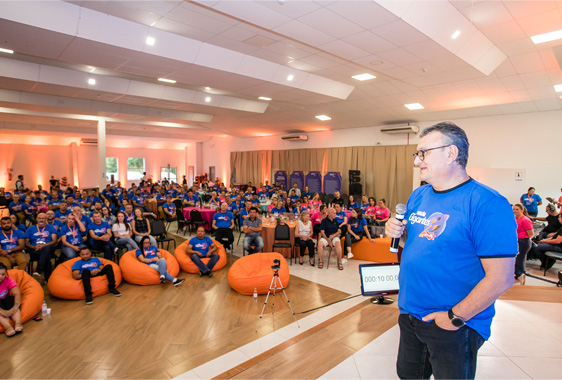 Diretor comercial da Docile compartilha com a equipe as conquistas da empresa durante a convenção de vendas (Foto: Divulgação)