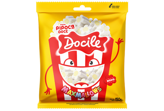 Empresa brasileira referência em doces e guloseimas e pioneira no país na criação dos marshmallows recheados, a Docile traz muitas novidades para as gôndolas e para a vida dos apaixonados por doces. Uma delas, desenvolvida para Copa do Mundo, é o marshmallow sabor pipoca doce.