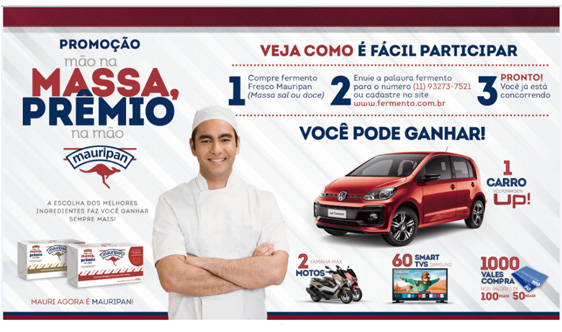 Intituladas “Tem Prêmio saindo do forno, Fleischmann” e “Mão na Massa - Prêmio na Mão, Mauripan”, elas estão recheadas com dois carros Volkswagen Up, quatro motos Yamaha Max, 120 Smart TVs e 2 mil vales-compra nos valores de R$100,00 e R$50,00.