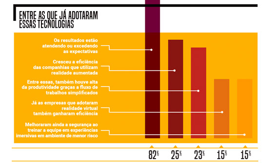 O uso de tecnologias imersivas, como realidade virtual e aumentada, está ajudando as empresas que já trabalham com elas a se tornar mais produtivas e eficientes. É o que mostra pesquisa da consultoria internacional Capgemini realizada com 709 empresas de setores diferentes, de maio a junho deste ano.