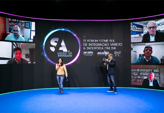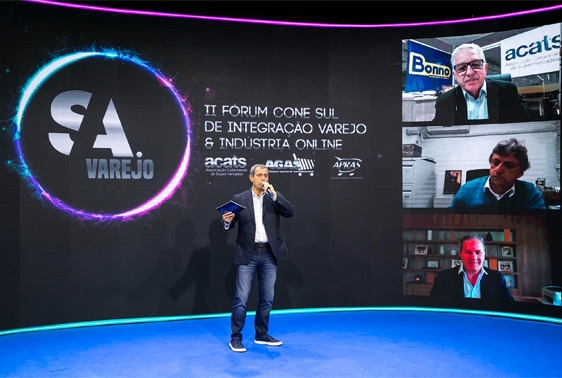 O encontro virtual foi realizado por SA Varejo em parceria com as três associações estaduais do setor supermercadista: Apras, Acats e Agas, representadas na plateia virtual por seus respectivos presidentes: Carlos Beal (no telão, último abaixo), Francisco Crestani (primeiro acima) e Antonio Cesa Longo. “Este evento é uma oportunidade de discutirmos como colocar, de fato, os consumidores no centro dos negócios”, reforçou Sergio Alvim, CEO da SA Varejo (na foto acima, em pé, no estúdio).