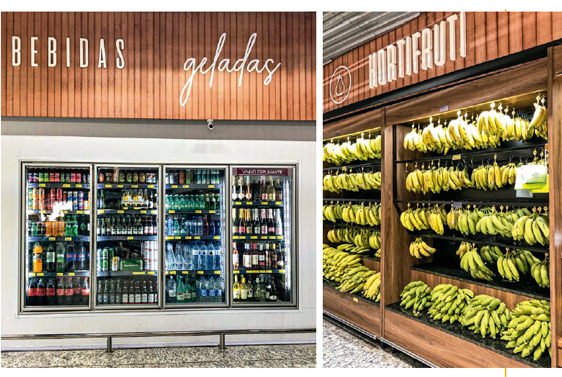 Já no setor de hortifrútis, as perdas são reduzidas com expositores de gancheiras para expor frutas, como a banana. Ao mesmo tempo, esses equipamentos facilitam a compra pelo consumidor. Localizada no Vale do Sereno, no município de Nova Lima, a unidade conta com 2.100 m2 de área de vendas.