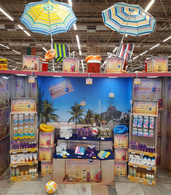 está realizando exposições diferenciadas nas lojas de super e hipermercados durante o verão. A ideia é agrupar os mais diversos produtos da companhia voltados aos cuidados redobrados que a estação exige dos consumidores.