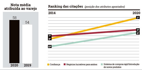 Outra boa notícia: confiança é o termo mais citado sobre a relação entre supermercados e seus fornecedores em 2020. Entre os temas priorizados também aparecem: shopper, liderança, execução em loja, qualificação da equipe. Saiba mais sobre o cenário atual da colaboração.
