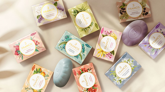Lançada em 1972, e tradicionalmente reconhecida por sua linha de sabonetes em barra, Francis apresenta atualmente aos consumidores um portfólio mais amplo e modernizado, atuando em novas categorias, como desodorantes e sabonetes líquidos. Em linha com o propósito de incentivar o autocuidado e o bem-estar, as iniciativas de Francis avançam em sua estratégia de transformar a marca de sabonetes em uma masterbrand de cosméticos na categoria de produtos para pele.