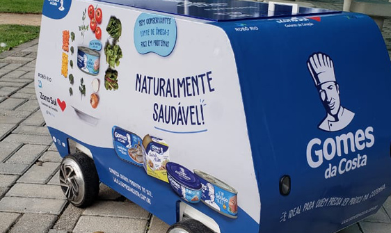A Gomes da Costa está patrocinando o robô remoto de entregas da rede Zona Sul , dentro do condomínio Península, no Rio de Janeiro. O consumidor faz as compras de forma digital e recebe os produtos em casa, dentro do condomínio, pelo carrinho robô. Isso mesmo, a entrega é automatizada, de forma autônoma, com monitoramento 4G à distância.