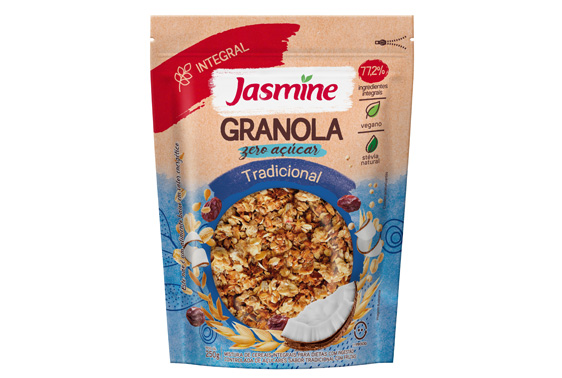 A Jasmine Alimentos acaba de lançar a granola zero açúcar versão 250g. Sua textura, cor e sabor idênticos são idênticos aos da versão tradicional, porém sem adição de açúcar.