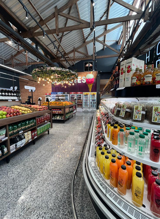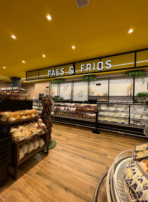 Os destaques ficam por conta da arquitetura em estilo industrial, a cozinha show para realização de eventos gastronômicos, adega e beer pub para uma imersão no mundo dos vinhos e chopp e o novo conceito de açougue, ampliando o mix de produto para linhas especiais com cortes de Dry Aged.