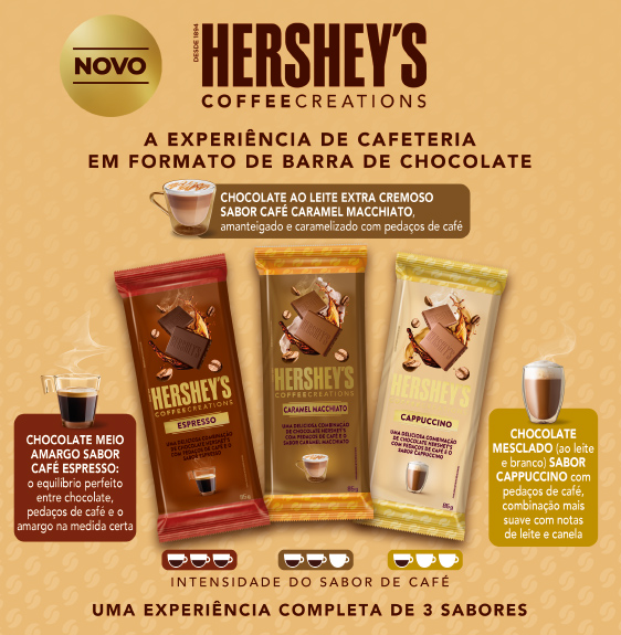 Incluir a linha completa de Hershey's Coffee Creations no mix de chocolates das suas lojas, proporcionando ao público inovação com três diferentes intensidades, significa contar com produtos de alto valor agregado com potencial de entrar na cesta de compras de um público amplo e, com isso, elevar o tíquete médio e melhorar as margens.