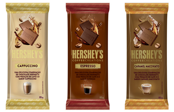 Com três receitas diferentes e muitos pedaços de café, a Hershey começa a explorar o segmento de chocolate de uma forma inédita no mercado brasileiro com o lançamento da linha Coffee Creations: