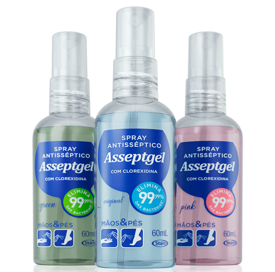 Para acompanhar as novas necessidades dos consumidores, a linha Asseptgel agregou uma série de produtos inovadores, desenvolvidos para facilitar a vida de todos na hora de manter afastadas ameaças à saúde. É o caso, por exemplo, dos lenços umedecidos antissépticos, cuja fórmula combina álcool 70% e clorexidina, permitindo assepsia rápida e eficiente, sem necessidade do uso de água e toalha.