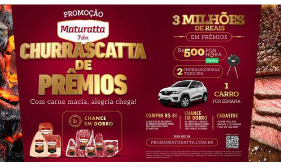Já está em andamento a promoção “Maturatta Friboi – Churrascatta de Prêmios”, que dura até 12 de maio e acontece em todo o território nacional. A ação, desenvolvida em parceria com a agência AKM Performma, visa reforçar a campanha publicitária da marca, iniciada na segunda quinzena de janeiro.