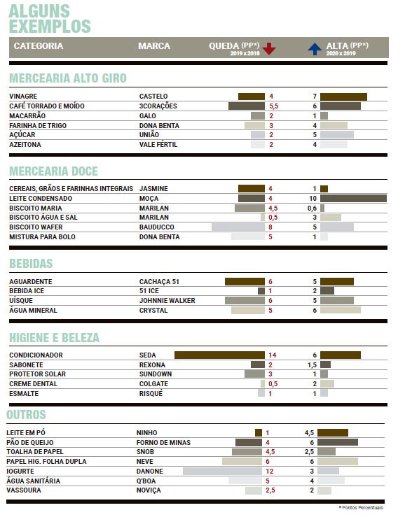 Embora neste ano 50% das líderes tenham perdido share ou se mantido estáveis, vários símbolos do mercado de consumo mostraram que é possível reagir e reconquistar espaço. Essas marcas melhoraram a distribuição e as negociações, investiram no ponto de venda, trabalharam com promoções inteligentes, aumentaram a equipe de vendas, lançaram produtos e embalagens mais interessantes para o consumidor. Muitas delas resgataram o share com a implantação de gerenciamento por categorias.