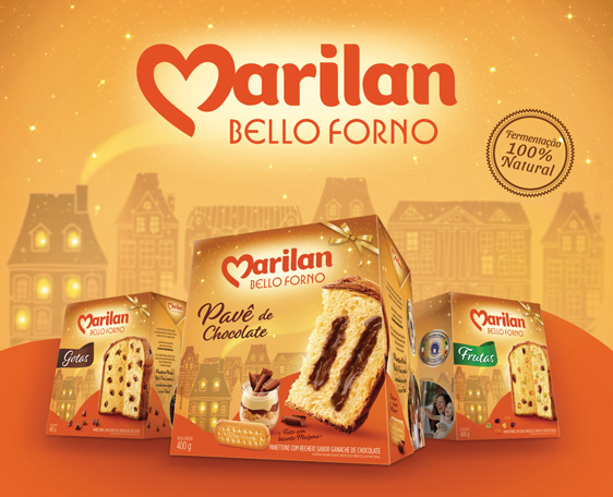 Os novos panettones podem ser encontrados também nos sabores tradicionais: Gotas de Chocolate e Frutas Cristalizadas. Todos são vendidos em embalagens de 400g, nas cores laranja – marca registrada da Marilan –, e dourado – que remete às festas de fim de ano. Essa identidade visual garante amplo destaque à marca Marilan Bello Forno nas lojas.