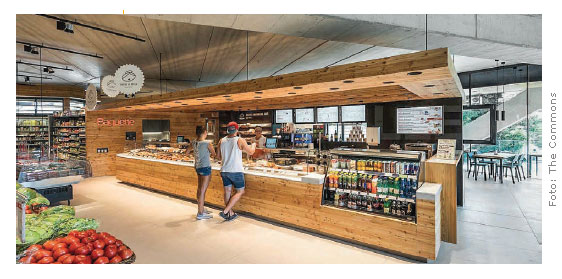AS ÁREAS DE REFEIÇÕES, com design claro e elegante, servem pratos ou lanches bem-feitos com preço acessível. A rede mantém no sortimento um grande número de produtos locais para estabelecer uma conexão estreita com o público.Ela compra orgânicos cultivados nas montanhas do Tirol e tem sua própria fábrica alpina de pães e preparo de carnes. Qualidade de vida com o sabor de casa é o que a MPreis “vende” a seus consumidores.
