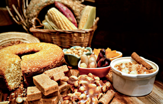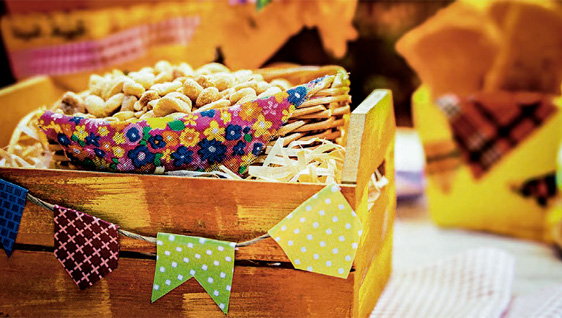 - Cestas de presentes: com pés de moleque, pipoca, doce de abóbora, cocadas, etc.