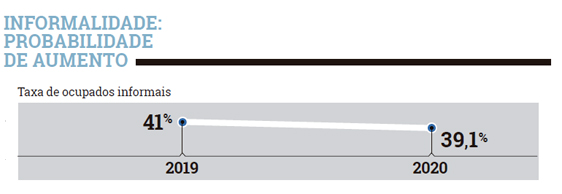 A informalidade teve ligeira queda no fim de 2020, mas deve ter aumento neste ano, segundo o economista da Tendências Consultoria, principalmente entre pessoas com menor qualificação profissional que perderam emprego. Elas deverão ocupar postos informais em atividades por conta própria, com empregadores que não têm CNPJ ou que são familiares que precisam de ajuda. “Ou seja, muitos terão queda na renda, que, se for à base de ‘bicos’, será ainda instável. Muitos não receberão nem o equivalente ao salário mínimo”, explica Lucas Assis.