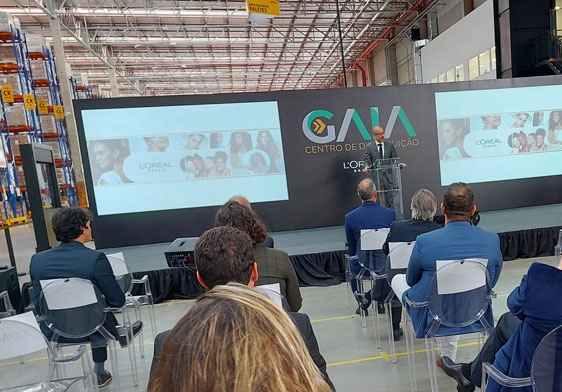 O evento de inaguração do CD Gaia contou com a presença de Marcelo Zimet, CEO da L’Oréal, e de Rodrigo Garcia, governador do Estado de São Paulo