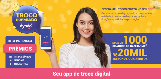 O app de troco digital Dyndo amplia a visibilidade, fideliza clientes e lança R$100 mil em prêmios