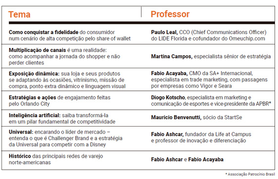 As lojas e atrações visitadas complementaram as aulas. Previamente selecionadas por Fabio Acayaba, CMO da SA+ Internacional, elas marcaram a missão de Orlando pelas experiências geradas.