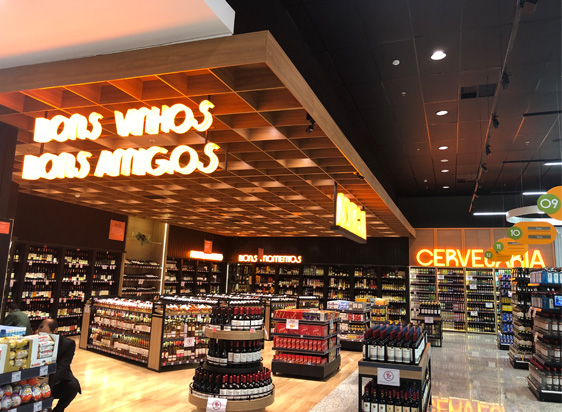 1 Bem-sinalizada e iluminada, a adega conta com uma boa variedade de vinhos, de diversas faixas de preço e uma área separada onde pode ser encontrada uma seleção da bebida com maior valor agregado. A proposta de algo diferenciado para o consumidor é complementada com a presença no espaço de destilados e de produtos importados e pela área de cervejas especiais, bem ao lado da adega.
