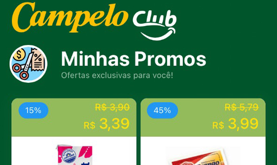 Para efetuar as compras online, basta ao consumidor baixar o app, que é totalmente personalizado para seu supermercado, como mostra o exemplo acima da rede Campelo, de Araguaína (TO).