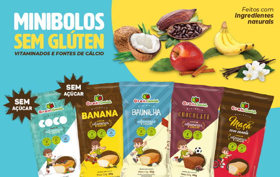 Esse mesmo cuidado de expor no ponto natural e também no corredor de produtos voltados à saudabilidade vale para os Minibolos sem Glúten, outro produto do qual a Grani Amici se orgulha de ter sido pioneira no desenvolvimento. Práticos, podem ir na lancheira das crianças e serem consumidos por pessoas de todas as idades em casa, no trabalho e em ocasiões on the go.