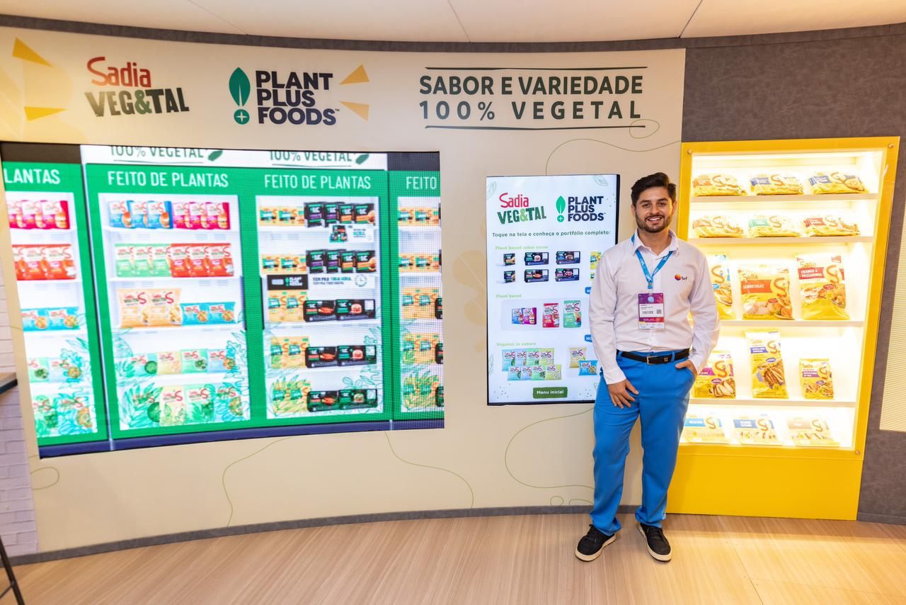 Thiago Viotto, gerente de Trade marketing da BRF, também destacou a novidade vegana da manteiga Becel e os outros itens do portfólio da Sadia e da Perdigão de origem animal, que tiveram suas embalagens reformuladas para chamar mais a atenção para a exposição na loja.