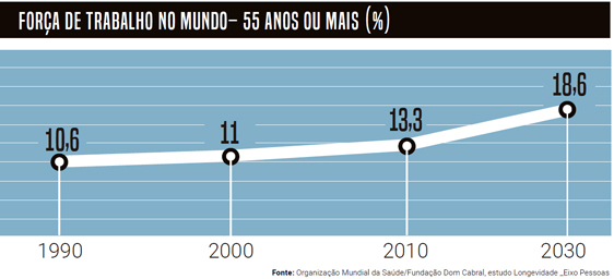 O Instituto de Pesquisa Econômica Aplicada (Ipea) aponta que desde a década de 1990 a população idosa economicamente ativa apresenta aumento constante e que em 2040 cerca de 57% da população brasileira em condições de trabalhar terá mais de 45 anos.