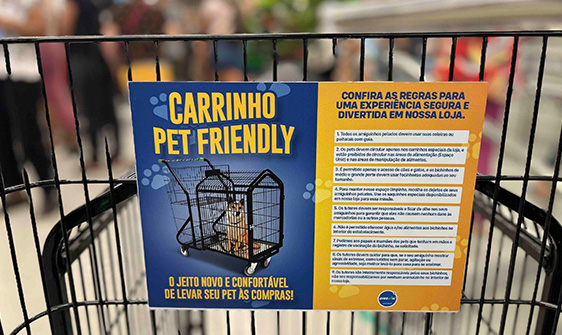 Em relação aos Pets, carrinhos especiais adaptados para transportar os animais foi desenvolvido. Porém, os tutores também podem circular com os seus animais pela loja em carrinhos ou caixas de transporte apropriadas.