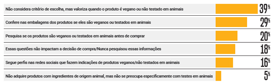 Segundo o estudo da Flora/Opinion Box, o fato de um produto ser vegano ou não ter sido testado em animais não chega a ser um critério de escolha em produtos para cabelos, mas é valorizado por uma fatia importante da amostra. Confira: