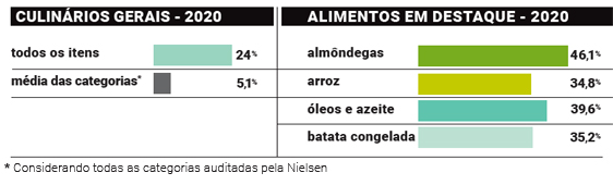 Se o ano passado foi bom para as vendas de produtos utilizados como ingredientes, 2021 deve manter essas categorias aquecidas. Em 2020, os produtos culinários apresentaram um crescimento expressivo em valor, de acordo com dados da Nielsen: