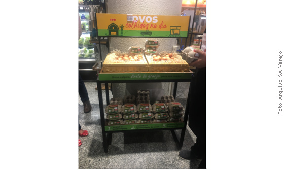 - Ovos colhidos no dia: vendidos em parceria com a Ito, o produto vem com a data, reforçando o atributo “frescor”. O consumidor também pode comprar por unidade em vez de caixas com quantidades já definidas