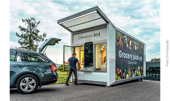 Um quiosque-robô, que pode ser instalado em qualquer lugar ao ar livre – estacionamento da loja, condomínios, universidades, espaços de food truck –, já foi adotado pelo Walmart e outras redes internacionais. Exige apenas energia e cabo de rede e opera para entrega de perecíveis, tendo duas zonas de temperatura, além de congelador. O fabricante é a Cleveron , startup da Estônia.