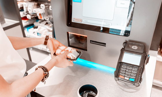 A tecnologia Smart Checkout de visão computacional reconhece itens apresentados de praticamente qualquer ângulo e os liga instantaneamente em uma única transação. O dispositivo não requer um aplicativo e os clientes não precisam encontrar e escanear códigos de barras.