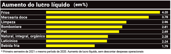 A rede paulista Emporium, com cinco lojas premium, multiplicou a rentabilidade com um sistema de estratégia de precificação e gestão de categoria desenvolvido pela Unitrier, empresa especializada em soluções para o varejo. As vendas cresceram 5,48% em 2021, em cima da base elevada de 2020. E o lucro líquido avançou importante 1,62%. Só não foi maior porque a mercearia salgada, puxada pelos alimentos básicos, teve um resultado negativo de 0,60%. As demais categorias ganharam impulso, registrando avanço de 1,70% a 4,20%