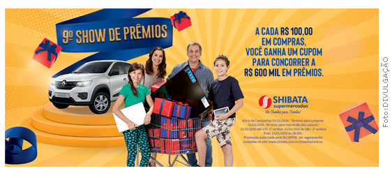 Os sorteios ocorrerão nos dias 11 e 23 de janeiro de 2020 e a campanha é válida para todas as lojas no segmento supermercados, casa e presentes. Mais informações podem ser encontradas no site .